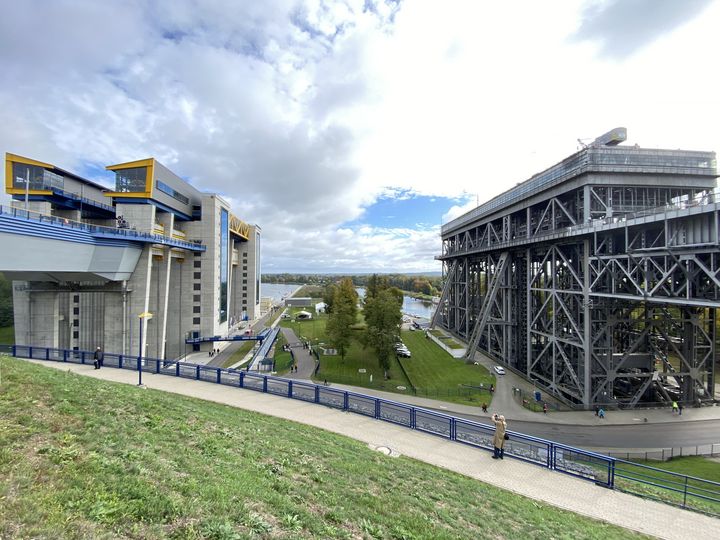 36 meters height difference in about three minutes: That's what the new Niederfinow boat lift on the Oder-Havel Canal in Brandenburg can do. The new trough will be able to transport inland vessels with a total length of 110 meters and weighing up to 2,300 tons. On October 4, 2022, the ship lift will officially go into operation after 14 years of construction.